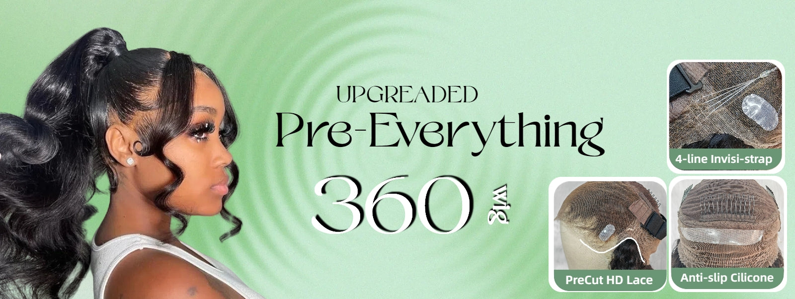 360 HD LACE FRONT WIG Invisible Strap - Staight / Body Wave with Curly Edge /4c Edge